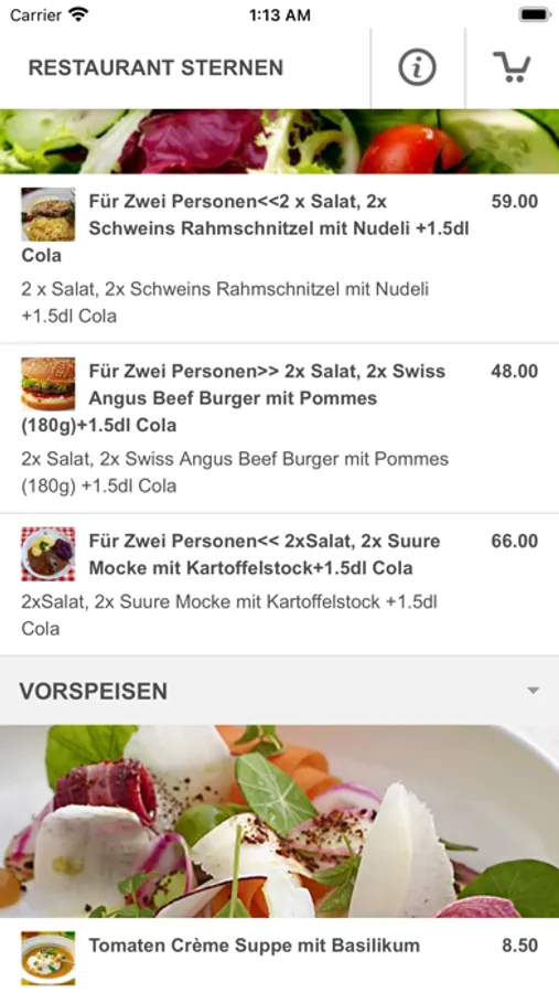 We at Restaurant Restaurant Sternen offer dishes of excellent quality and cordially invite you to get to know our delicious cuisine.