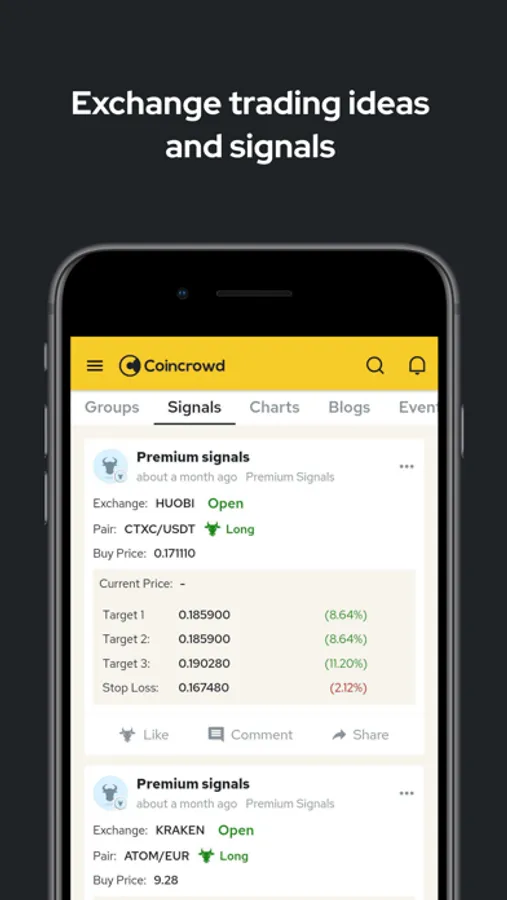 Post, predict, analyze, or research, Coincrowd is your go to app for everything crypto. Connect with community members, discover new projects and discuss your favorite cryptoassets. Find out what your network owns and more. On Coincrowd, staying up to date with the latest developments in the crypto space is easy.