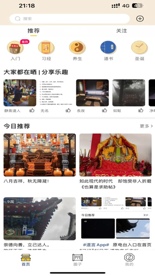 传统文化交流圈、道文化圈、古籍分享、古典音乐分享等。