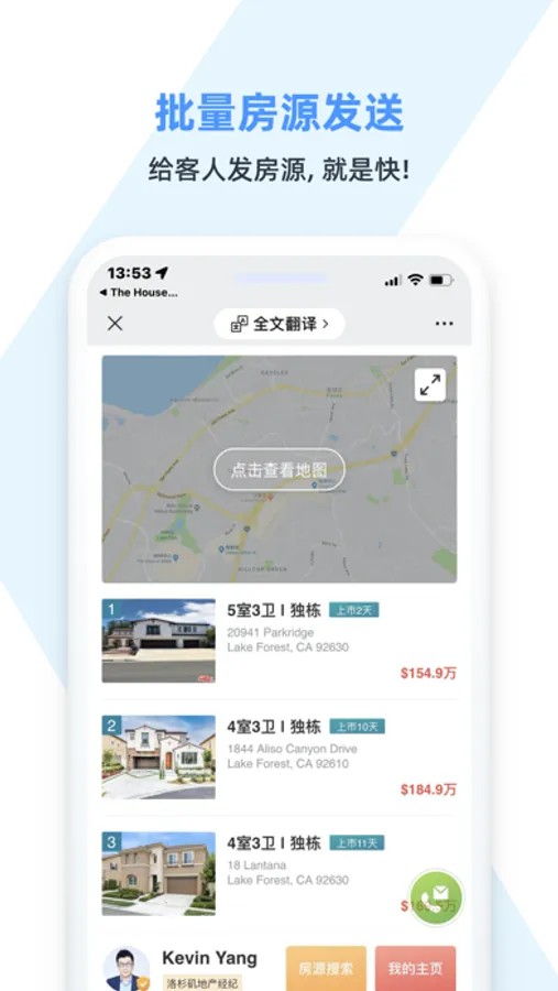 - 分享任何文章或房源都自带基于“客云来”技术的经纪人联系信息
