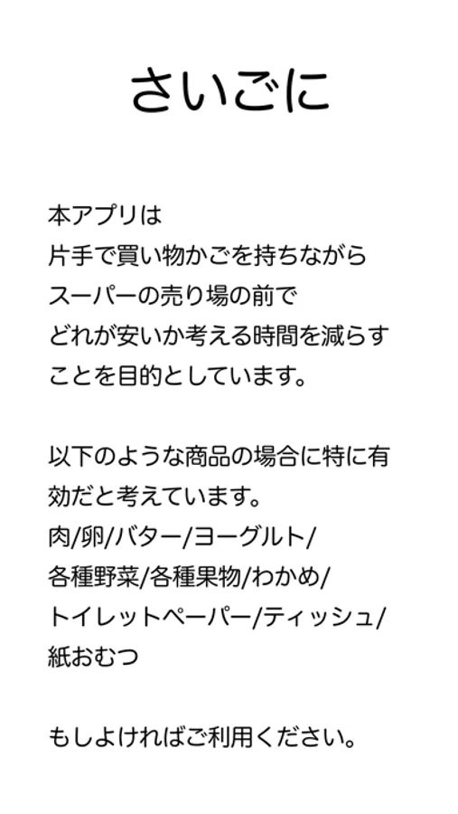 インターネット接続も不要なのでスーパーの奥の方の電波が悪いところでも難なく使えます。