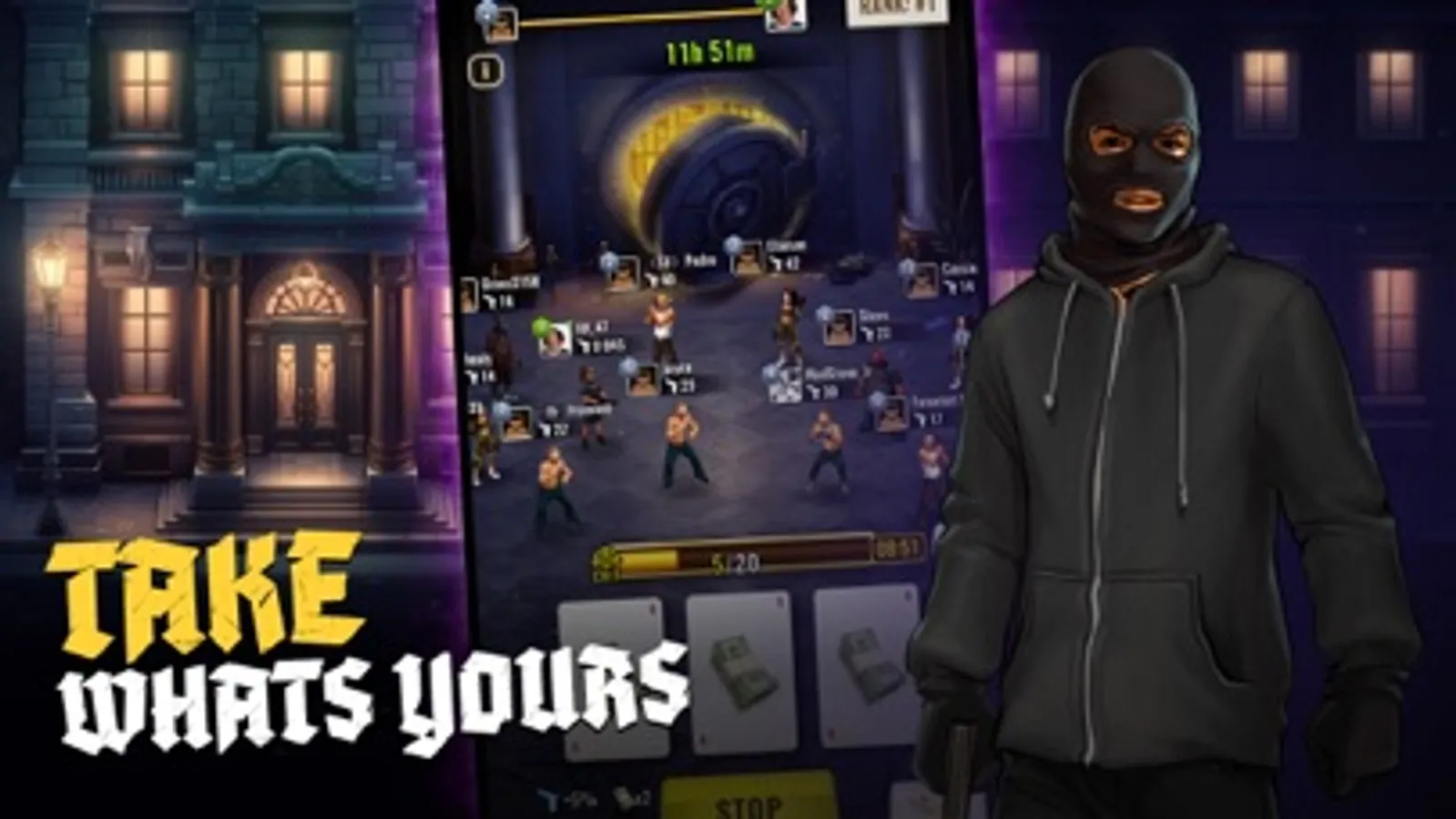 - Choose your character from a diverse line-up of mobsters and carve their path to the top. Compete in a bank heist to get some money, earn respect in the game and strengthen your position in the gangster city!