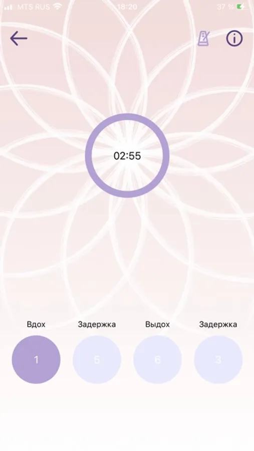 Таймер дыхания предназначен для дыхательных тренировок, позволяет выставлять интервалы для вдоха, выдоха и задержки дыхания. Также можно установить общее время тренировки.