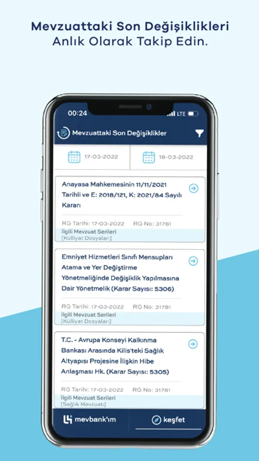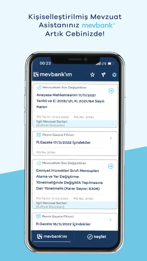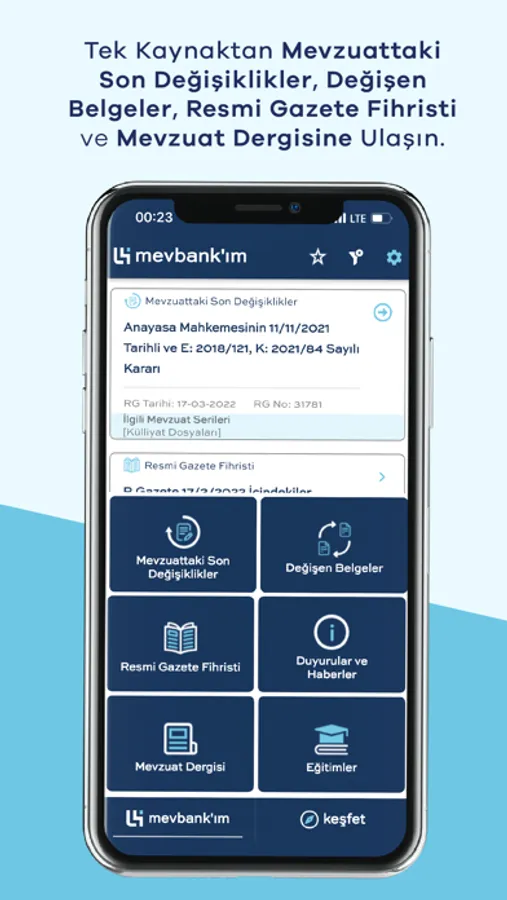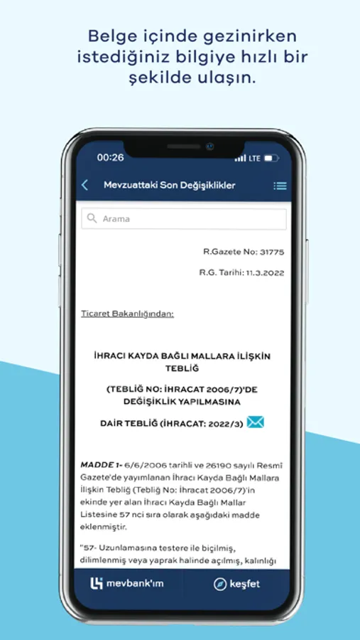 Mevzuattaki Son Değişiklikler, Değişen Belgeler, Resmi Gazete Fihristi ve derin araştırma yazılarına kolayca ulaşabileceğiniz yeni Mevbank Mobil Uygulama ile ihtiyacınız olan en güncel bilgi her zaman cebinizde!