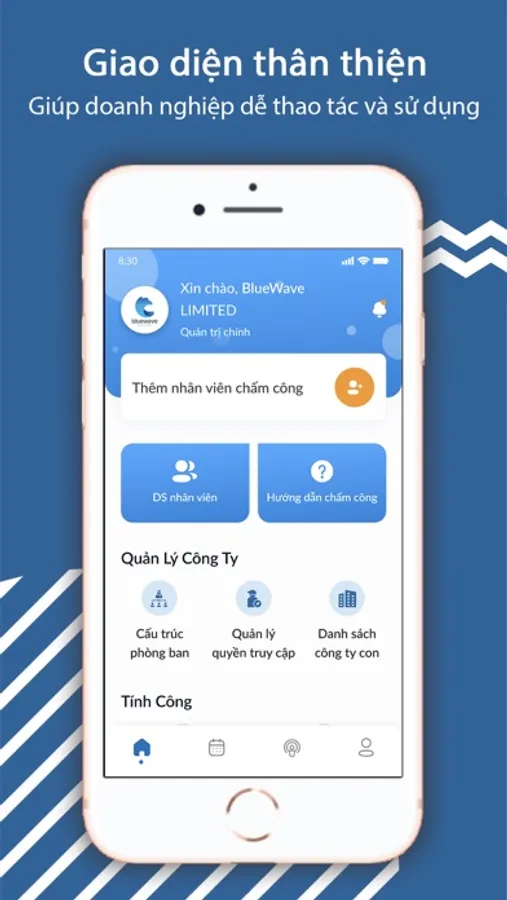Công ty có thể thiết lập cách điểm danh, xây dựng cấu hình chấm công, thiết lập danh sách ca làm việc và lịch làm việc của nhân viên.