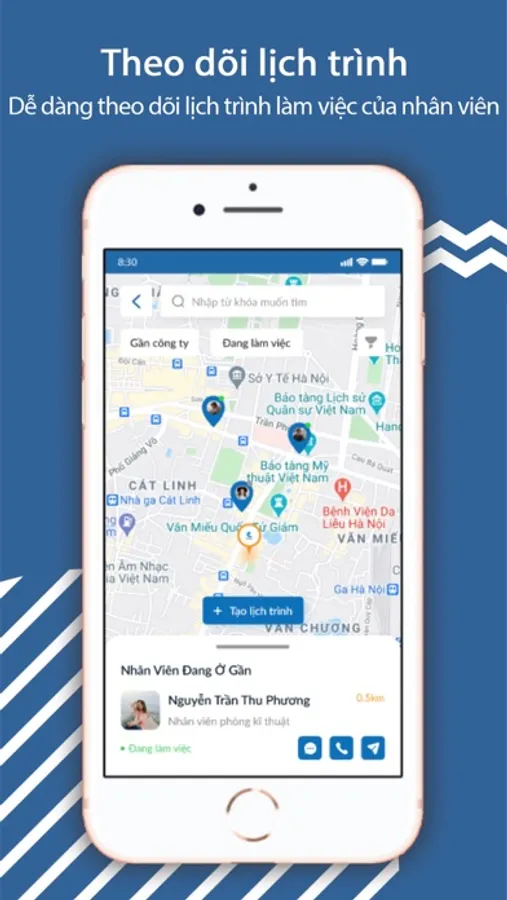 Những nhân viên đang ở gần bạn, đang ở vị trí nào, phòng ban nào, đang trong chế độ làm việc hay không,... đều sẽ được cập nhật và hiển thị rõ ràng trên bản đồ vị trí.
