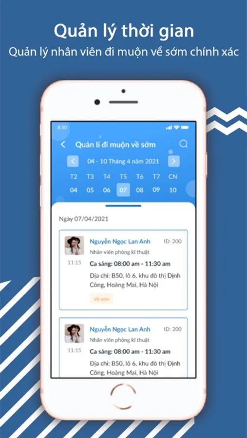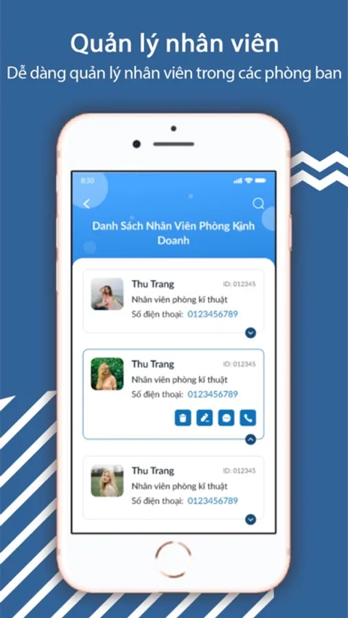 Danh sách nhân viên sẽ là danh sách quan trọng để công ty, doanh nghiệp có thể dễ dàng quản lý cũng như xây dựng các lịch trình và công việc hàng ngày. Việc thiết lập danh sách đã trở nên nhanh chóng hơn khi có thể cập nhật thông tin nhân viên ngay trên app bao gồm cả thông tin cá nhân và khuôn mặt của từng người.
