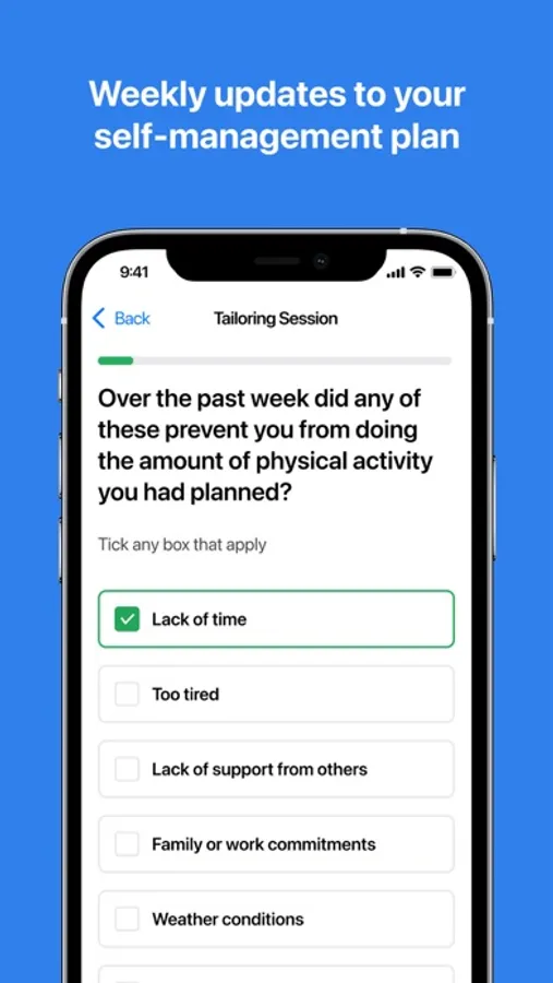 While using SelfBack, you will receive a tailor made self-management plan, which is updated and adapted continuously ensuring you will receive the best possible treatment all the time.