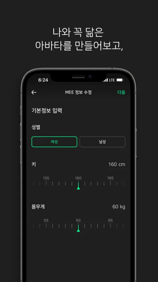 -나를 닮은, 내 취향에 맞는 아바타의 얼굴, 체형, 헤어스타일을 선택해서 나만의 아바타를 만들어보세요.