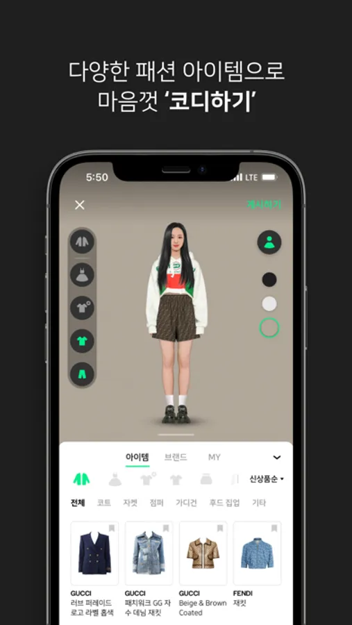 다른 사람들의 코디를 참고하고 나만의 아바타로 다양한 코디 스타일링을 해보고 제품 구매까지!