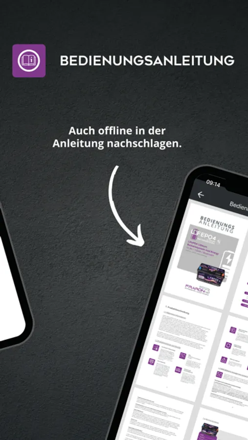 Die FraRon Iced Energy App ermöglicht die Verbindung mit Ihrer FraRon Iced Energy 100Ah Lithium Batterie via Bluetooth. In der App können Sie den Ladezustand der Batterie prüfen und die Details des Lade- und Entladestatus einsehen. Die App warnt Sie bei jeglichen Störungen und zeigt Ihnen die genaue Alarmmeldung an. Zudem können Sie die Bluetooth Verbindung zur Batterie jederzeit wieder trennen. Auch ohne Verbindung können Sie über die App in der Bedienungsanleitung nachschlagen und unsere Kontaktdaten aufrufen.