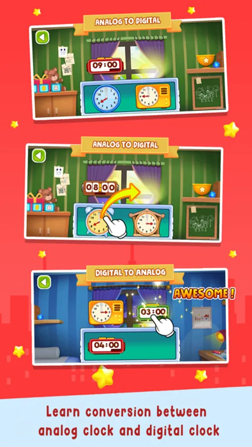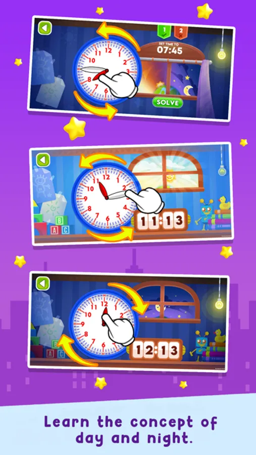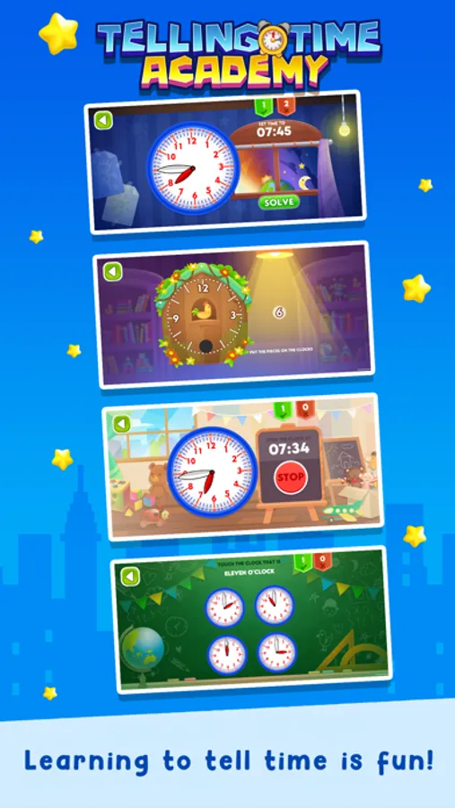 We understand the many challenges faced by parents when explaining clock concepts to young children and that is why Telling Time Academy balances the need for learning with fun and interactive games.