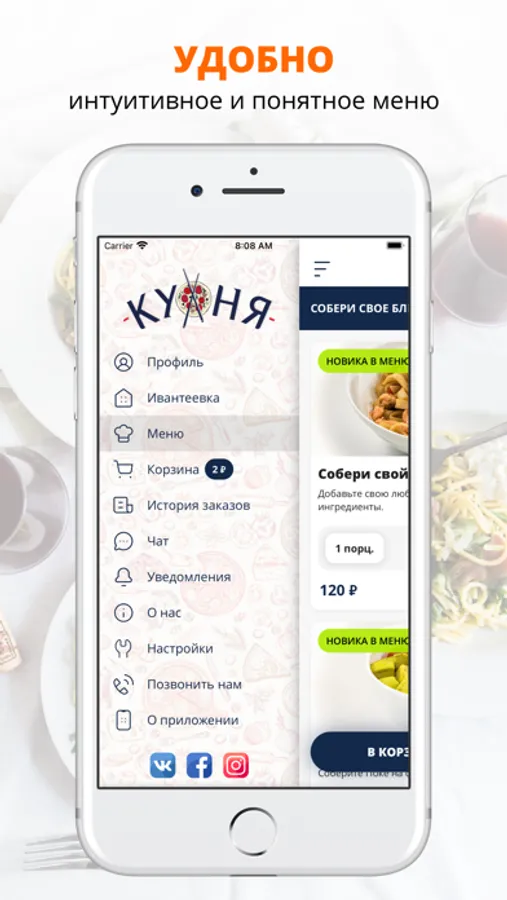Установите приложение, выберите любимые блюда из нашего меню и оформите заказ всего в несколько кликов! С помощью мобильного приложения сможете получать и копить бонусы, отслеживать статус заказа, выбрать удобный способ оплаты и быть в курсе всех акций и новостей!