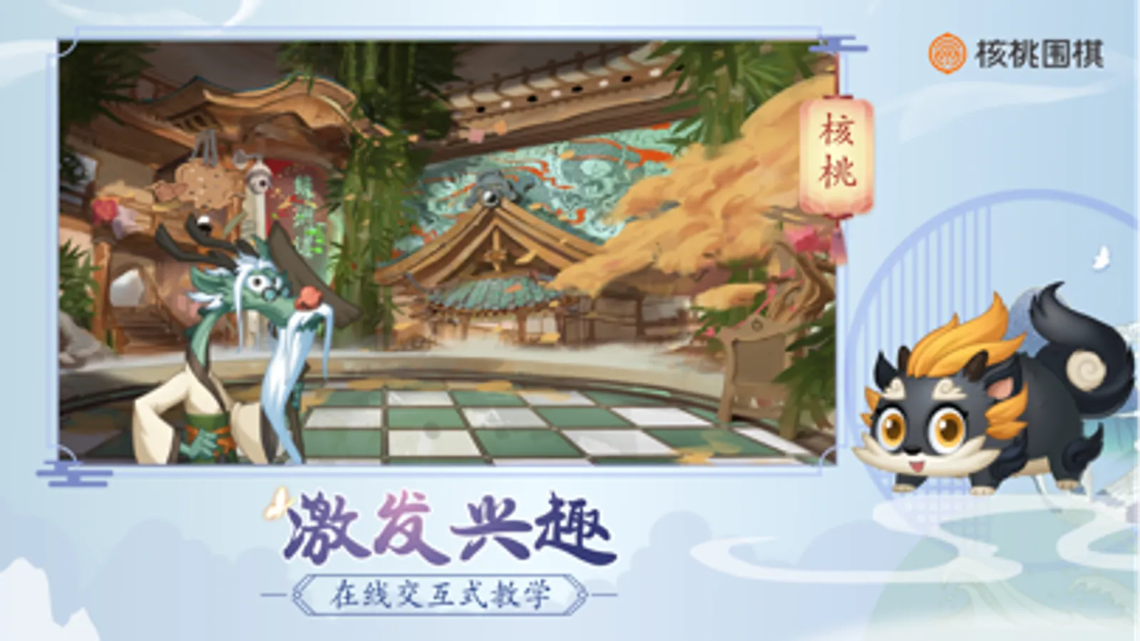 1、在线交互式教学,激发兴趣——课程采取的是互动式讲解,让学生置身于一定的故事场景中,通过与角色的互动进行学习,让学生从学习的旁观者变成参与者。讲解过程穿插对应的练习,以闯关的形式呈现,帮助学生当堂吸收,让学生获得成就感。同时,讲解内容既有专业的围棋知识,也会穿插一些围棋相关的国学知识、历史故事(比如围魏救赵、田忌赛马等),让学生一边学棋一边感受传统文化的魅力。