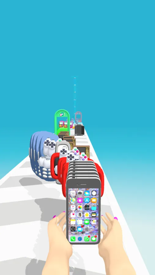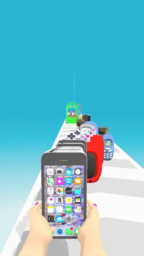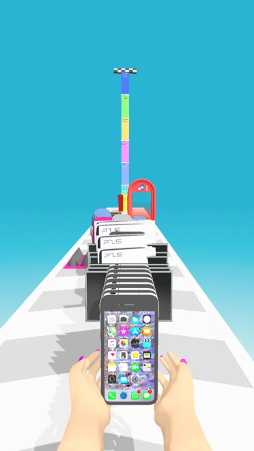 Collect electronic devices and stack them! Upgrade your devices and get to the finish!