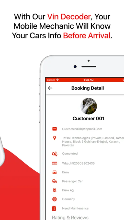 • Users can be able to send there car information at the time of booking like ( VIN Number, car name, requirements etc )