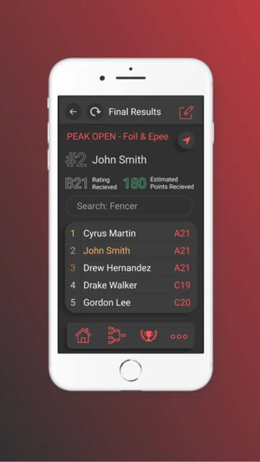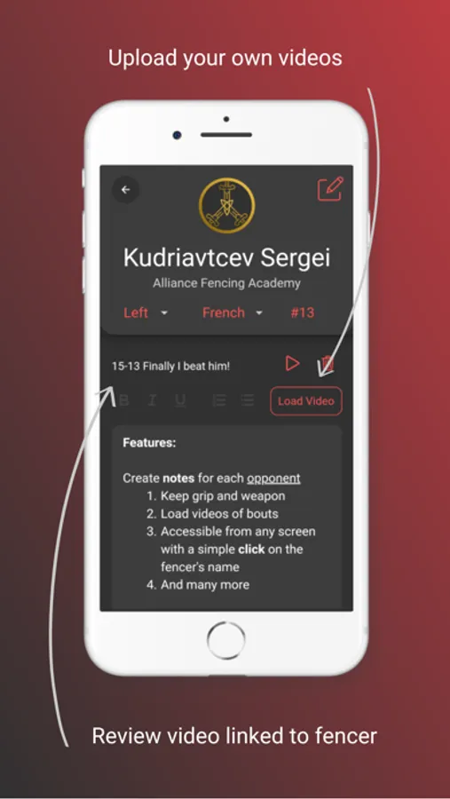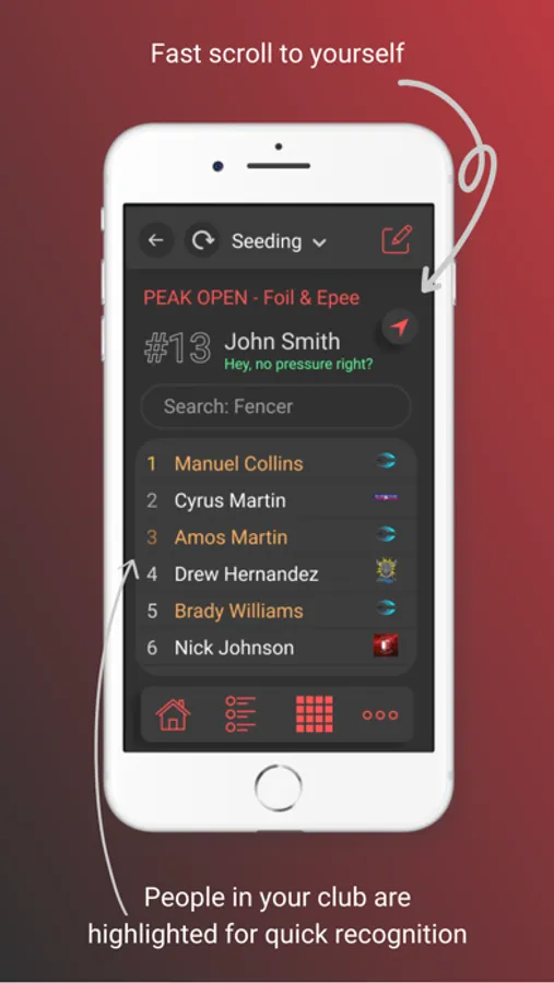 - Personalized notes organized by fencer (access by simply clicking fencers name from any screen)