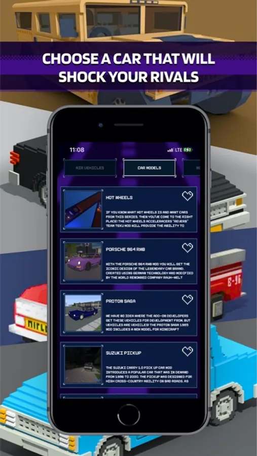 Cars & Vehicles for Minecraft DISCLAIMER: This is an unofficial application for Minecraft. This application is not affiliated in any way with Mojang AB. The Minecraft Name, the Minecraft Brand and the Minecraft Assets are all property of Mojang AB or their respectful owner. All rights reserved. In accordance with Mojang Studios Account
