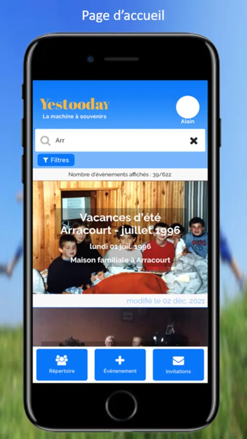 « En utilisant les technologies modernes, YESTOODAY rassemble très simplement, et pour chaque événement, les archives et les souvenirs de ceux qui y étaient présents.