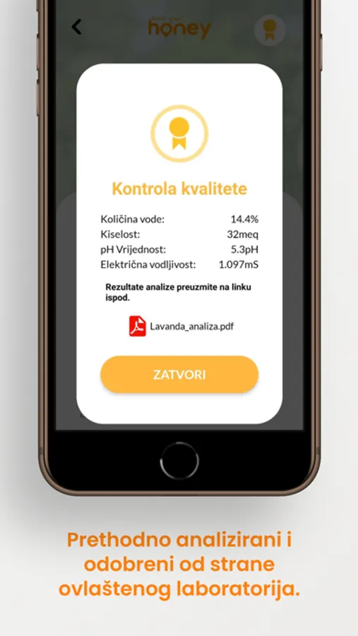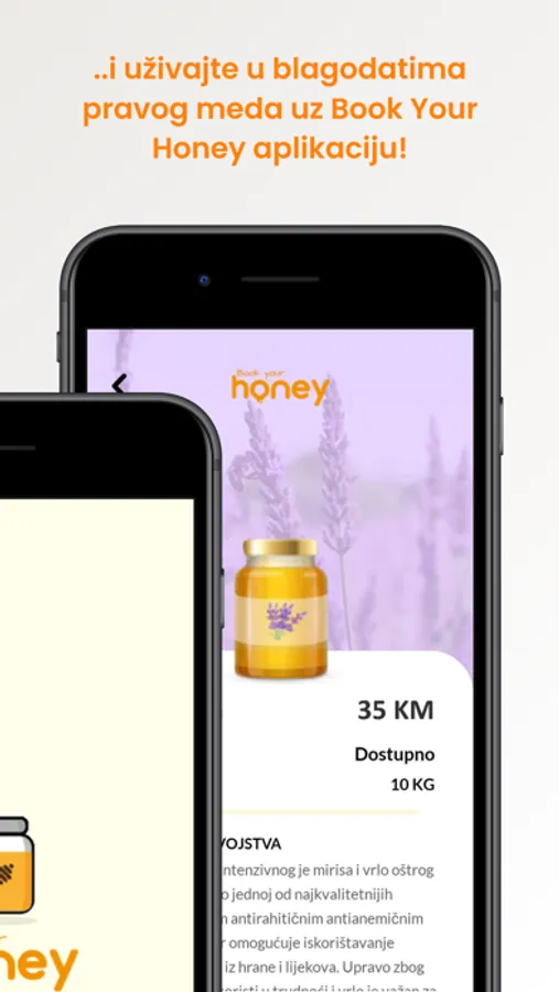 Book Your Honey aplikacija omogućava zaštititu potrošača od proizvoda sumnjivog porijekla i osigurava kupovinu isključivo kvalitetnog i pravog meda. Suradnja s pčelarima koji proizvode kvalitetan domaći med i s ovlaštenim laboratorijem za analizu meda je ono što čini ovu aplikaciju jedinstvenom i sigurnom za potrošače. Rezultati analize su dostupni svim korisnicima kako bi prilikom kupovine znali da je u pitanju 100% ispitan i kvalitetan proizvod. Više ne morate da brinete o provjeri i analizi meda, uz Book Your Honey aplikaciju možete samo uživati u svim blagodatima pravog meda!