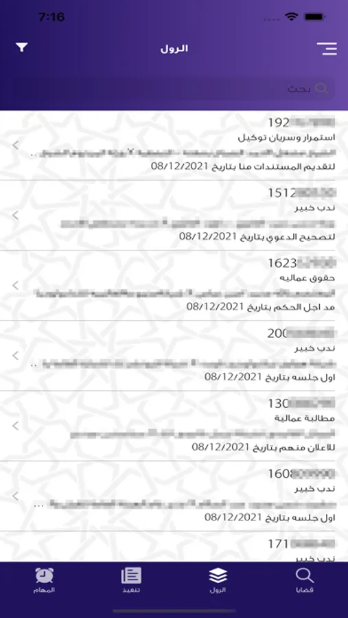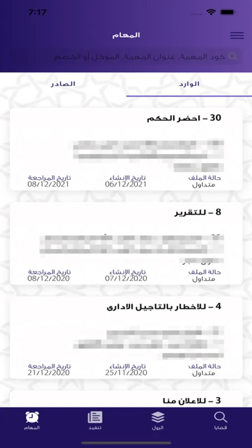 - يمكن لموظفى المجموعة القانونية الدولية البحث بالقضايا, إستعراض الرول وإنشاء مهام داخلية