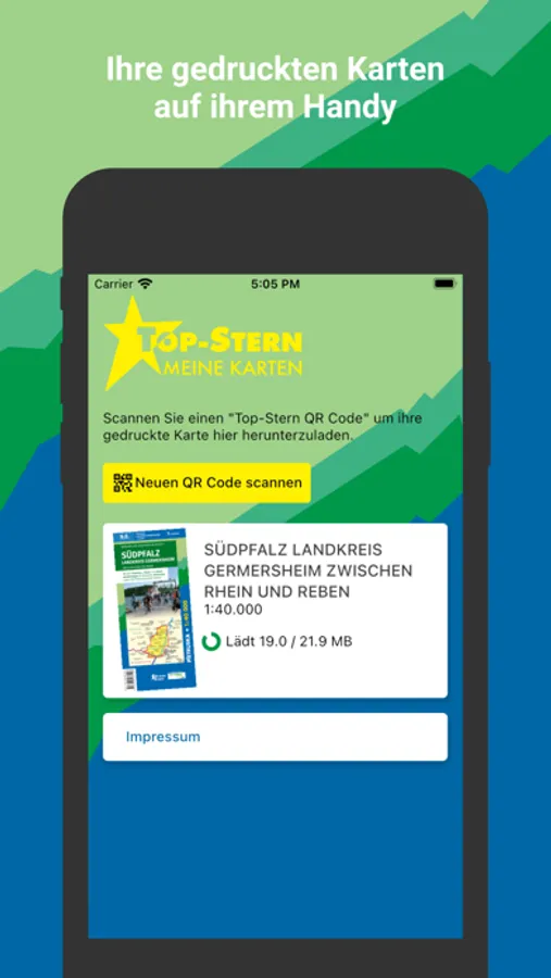 Installieren Sie unsere App kostenlos auf Ihrem Gerät. Laden Sie sich Ihre Rad- und Wanderkarte oder eine regionale Tourismuskarte mittels des aufgedruckten QR-Codes schnell und einfach auf Ihr Handy oder Tablet. Registrieren Sie Ihre gekauften Karten kostenlos auf Ihrem Gerät für eine dauerhafte Nutzung oder testen Sie Karten im zeitlich beschränkten Demo-Modus. Mit der unentgeltlichen Registrierung haben Sie Ihre gekauften Top-Stern Wander- und Radfahr-Karten unterwegs immer schnell zur Hand und können diese jederzeit auch ohne Internetempfang (offline) unkompliziert nutzen und kurzzeitig teilen. Mittels der GPS-Funktion Ihres Gerätes wird Ihr aktueller Standort zuverlässig auf Ihrem Bildschirm angezeigt und auch bei der Fortbewegung regelmäßig automatisch aktualisiert. Folgen Sie den abgebildeten Wegen oder nehmen Sie spontan eine Abkürzung, mit unserer App sind Sie spontan und frei in Ihrer Wegfindung. Damit ist die Top-Stern Meine Karten App Ihr idealer Begleiter für die Wegfindung und Orientierung bei Wanderungen sowie Radtouren und verbindet somit die Vorteile einer gedruckten Karte mit denen eines Online-Kartendienstes. Überzeugen Sie sich selbst!