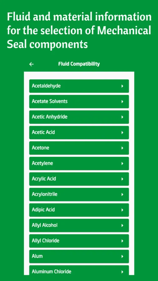 You can also check in the application which materials are recommended for your mechanical seal according to the fluid used by your industrial process. Learn which materials are the most recommended for each type of chemical fluid.