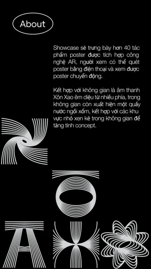 The showcase will display more than 40 poster works integrated with AR technology, viewers can scan the poster with their mobile phone and see the poster in motion. Combined with the space is the soothing sound of the tumultuous movement from many sides, in the air. There is also a squatting bar, combined with alternating small areas to increase the concept