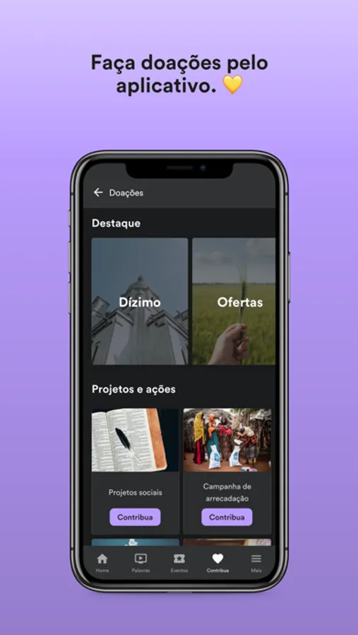 - Siga a agenda e fique por dentro de tudo que acontece na igreja, inscreva-se em eventos e tenha seus ingressos sempre com você.