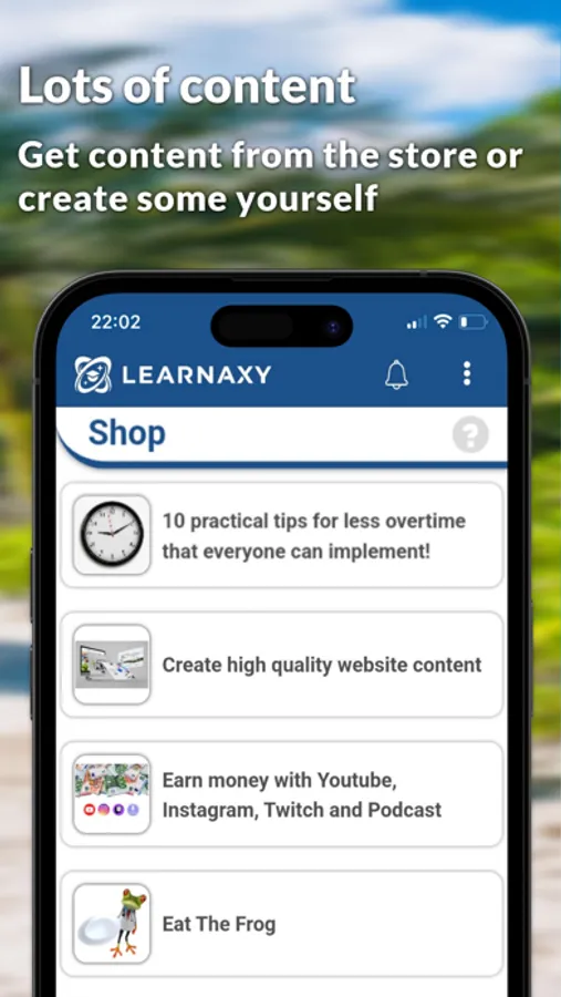 With the editor you can create your own learning content. Learn exactly what you want to learn and need for your life. You can offer your own learning content commercially in the store and help others.