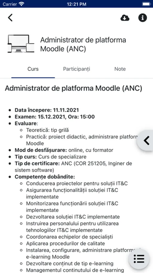 Cursuri online - acces la conținut, cursuri, materiale de învățare și teste de evaluare.