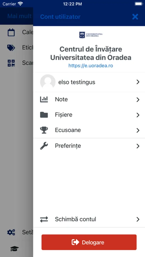 Aplicația de mobil pentru conectarea profesorilor și studenților la platforma de eLearning a Universității din Oradea la adresa web https://e.uoradea.ro.