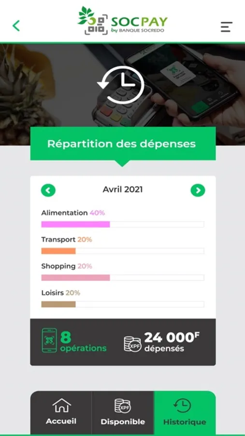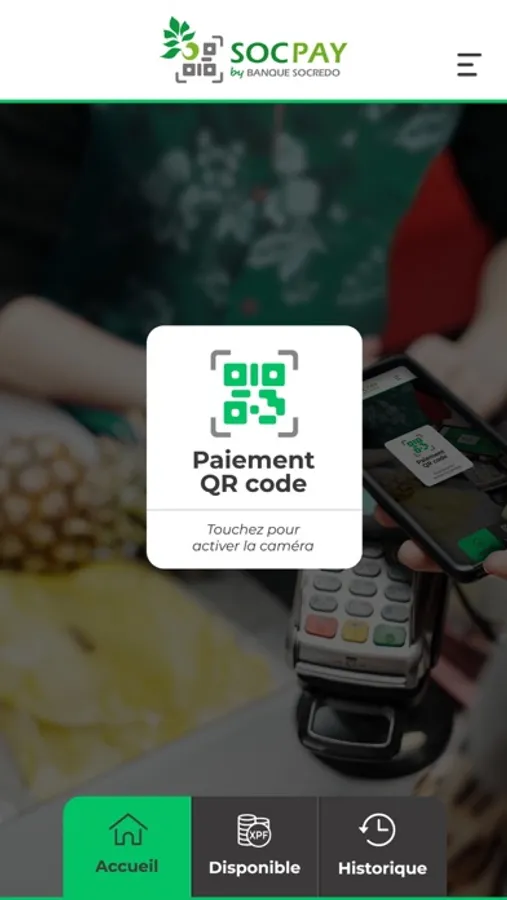 SocPay vous permet d'enrôler vos cartes privatives SOCREDO, puis de payer en QR/Code chez les commerçants affiliés au service.
