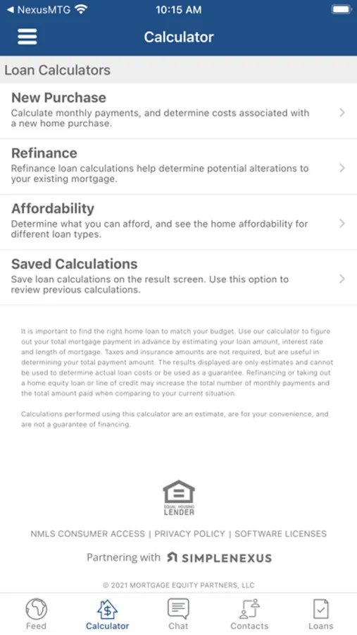 Mortgage Equity Partners and its affiliates, including CMG and other subsidiaries, work with our customers to provide the best possible home financing experience through exceptional customer service, education, and technology. To that end, we have developed The MEP Mortgage Experience mobile app as a tool to make the lending experience transparent, efficient, and fast. We have created our app to assist homebuyers in purchasing a home, homeowners who want to refinance their current home, and real estate agents who want to track the loan process.