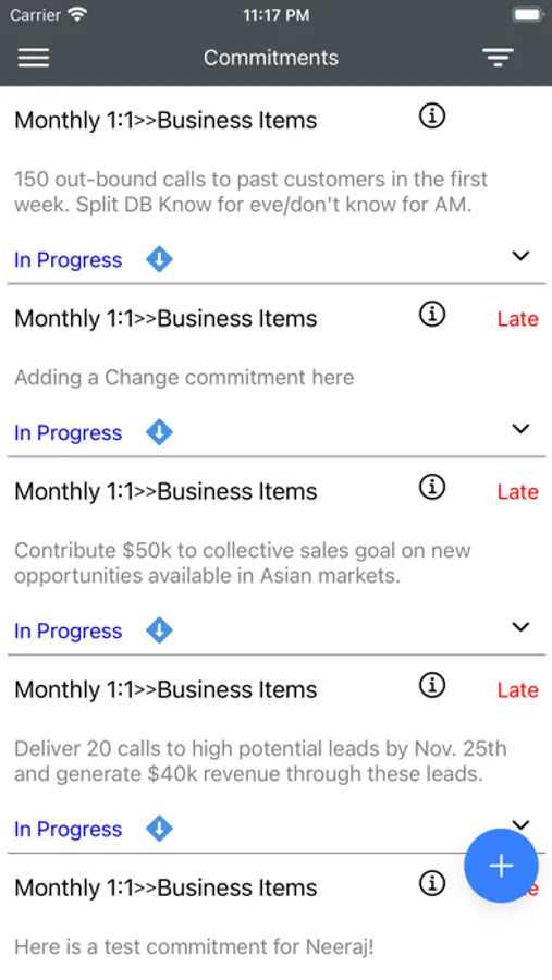 The Coach RT© solution organizes and distributes action plans as independently trackable commitments. Key stakeholders are alerted when commitments are started, changed, completed, or dropped.