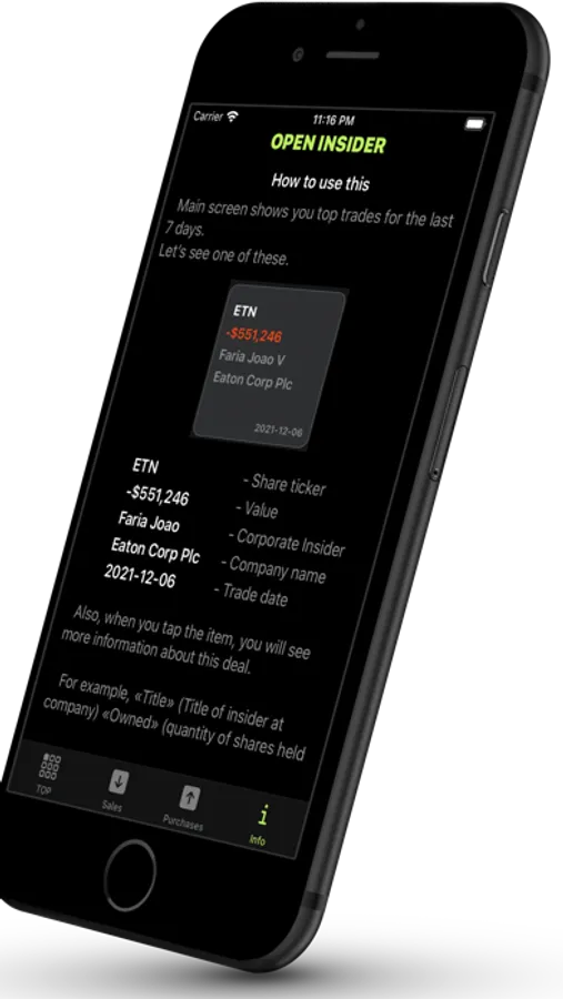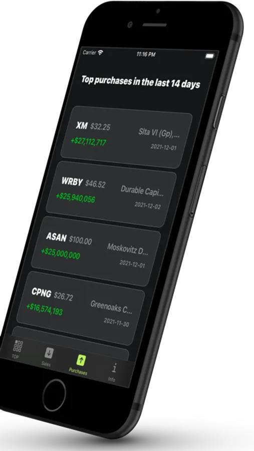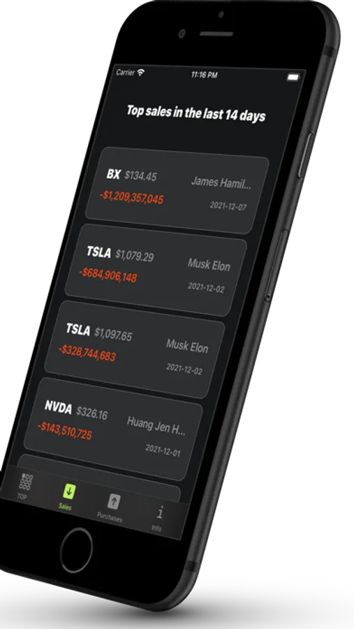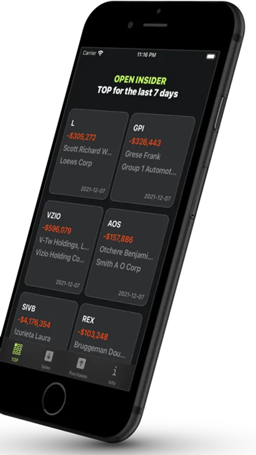 Mobile app Trading Screener shows you private transactions. You will be one of the first to be notified about financial activities. Trading Screener can filter stock data according to provided criteria.