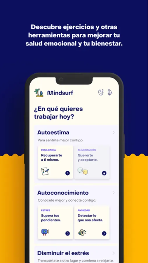 Mindsurf es una aplicación que usa inteligencia artificial y técnicas psicológicas probadas para ayudarte a detectar y disminuir los síntomas de ansiedad, estrés, depresión, burnout, entre otros. También te ayuda a desarrollar tu autoestima, inteligencia emocional y resiliencia. Con una amplia variedad de programas y ejercicios podrás mejorar en todos los aspectos de tu salud mental.