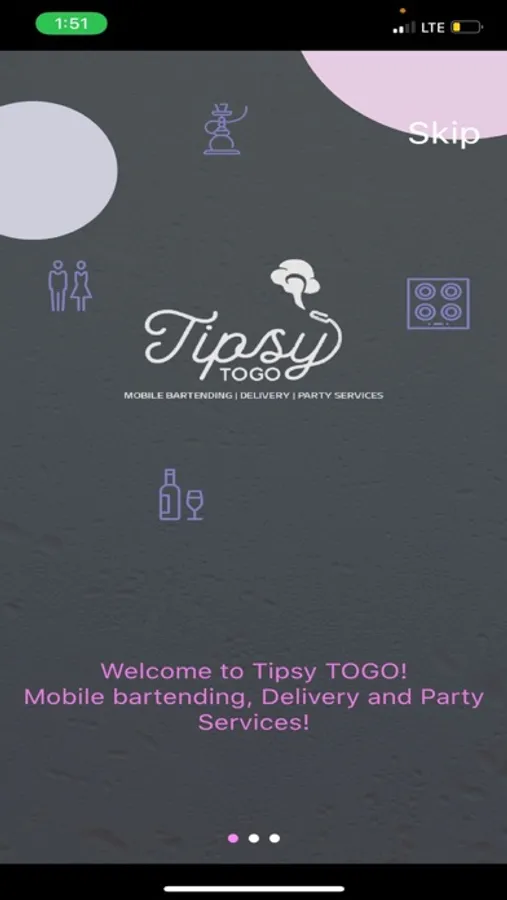 * The Tipsy ToGo app does NOT sell alcohol. Alcohol must be provided by customer or ordered from a vendor for delivery or booking.