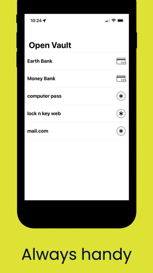 Lock n Key Wallet is a secure digital wallet that will securely save your sensitive data like your credit cards, notes, and passwords.