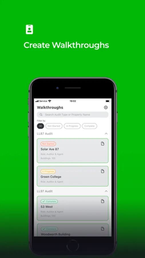 Energy Audit and inspection templates are tailored to your business needs, with off-the-shelf templates available for: LL87 Compliance (NYC), LL97 Compliance (NYC), ASHRAE II, BEPP (Philadelphia), BERDO (Boston)