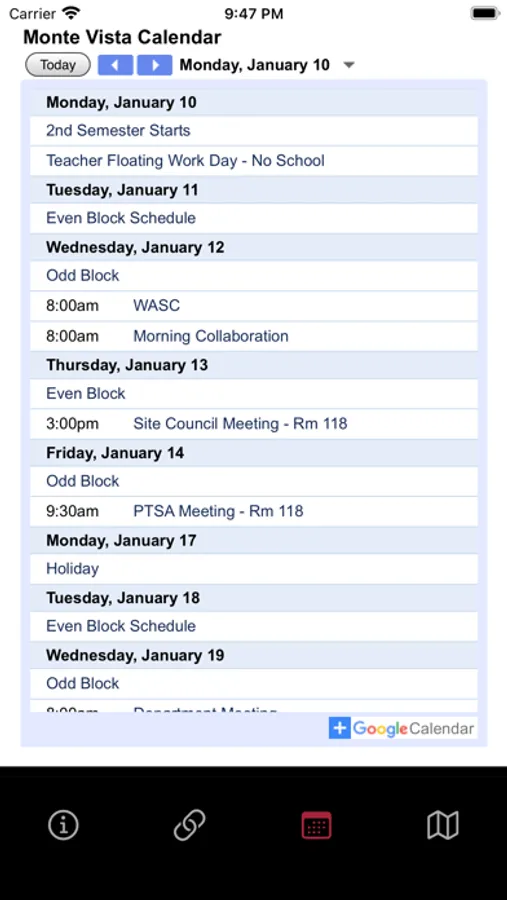 The app with all the upcoming spirit days, holidays, and important events.