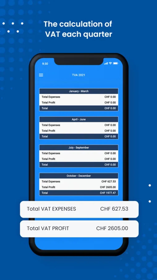 ⁃ The VAT statement allows you to see the expenses and the quarterly collection.