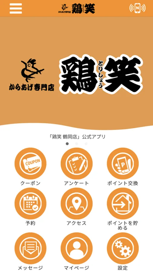 このアプリでは、鶏笑の最新情報の受け取りや便利な機能を使う事ができます。