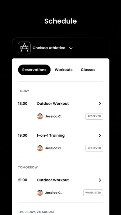 For members of Chelsea Athletica to reserve their place in a class, sign up for gym events, and general account management like updating headshots and credit card on file.