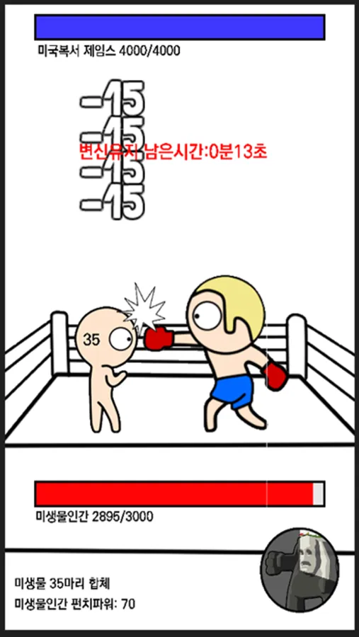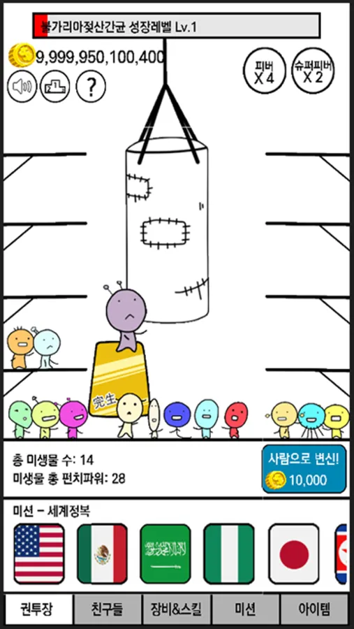 3. 성장레벨은 미생물 탄생에 사용되고, 파워레벨은 미생물끼리 합체하여 각나라의 복서와 싸울때 사용됩니다.'