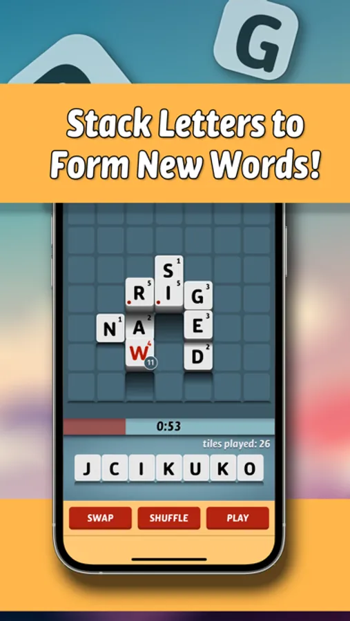 The higher you the stack, the higher you score. Build words, stack letters, score high and have fun!