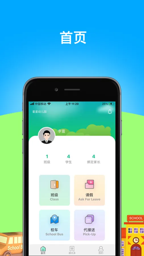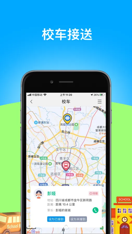 校车接送提醒功能负责接送的教师算好校车到达接、送孩子地点,一键提醒家长提前到达指定的接送地点,解决由于路上堵车,家长站在路边长时间等待的烦恼问题。