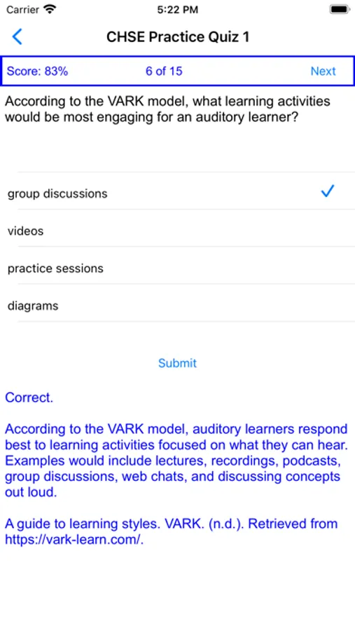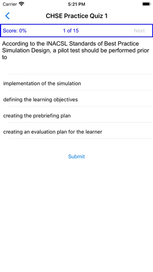 The CHSE Prep app contains 330 exam questions. Each of the 22 quizzes are only 15 question long so you don't have to invest much time to get a feel for your performance level. Track your cumulative progress so you know when you are ready to take the real exam. You can reset all the exams and retake them as many times as you like.