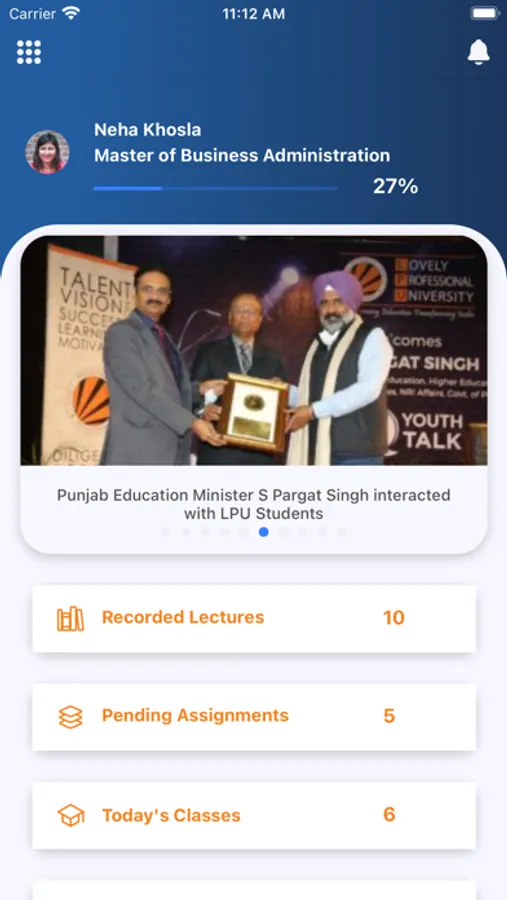 he app is a fast, convenient and smart way through which LPU Online mode learners can have 24x7 access to the Learning Management System – LPU e-Connect. The app provides the learners a personalized dashboard with number of features like: