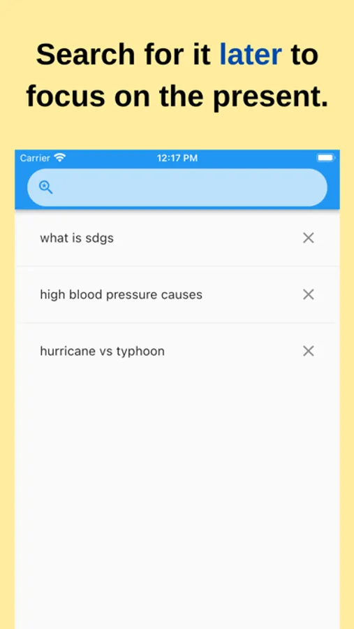- Things you don't have time to look up now but want to search later.
